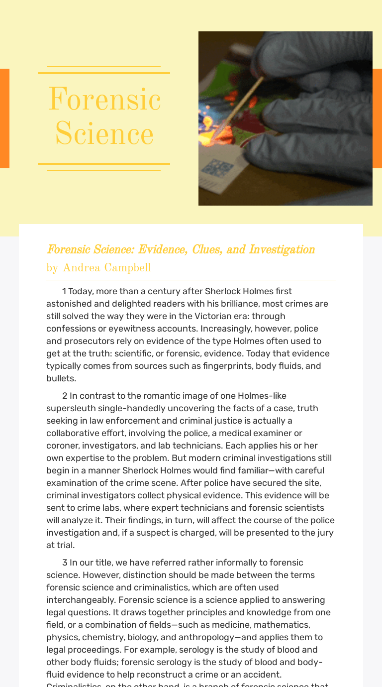F or many people, forensics is a fascinating but confusing field that is full of mystery and intrigue. Free interactive exercises to practice online or download as pdf to print. Forensic science was a science that originated from necessity. Explain why eyewitnesses often give inaccurate information. The curious lives of human cadavers by mary roach, the poisoner's handbook